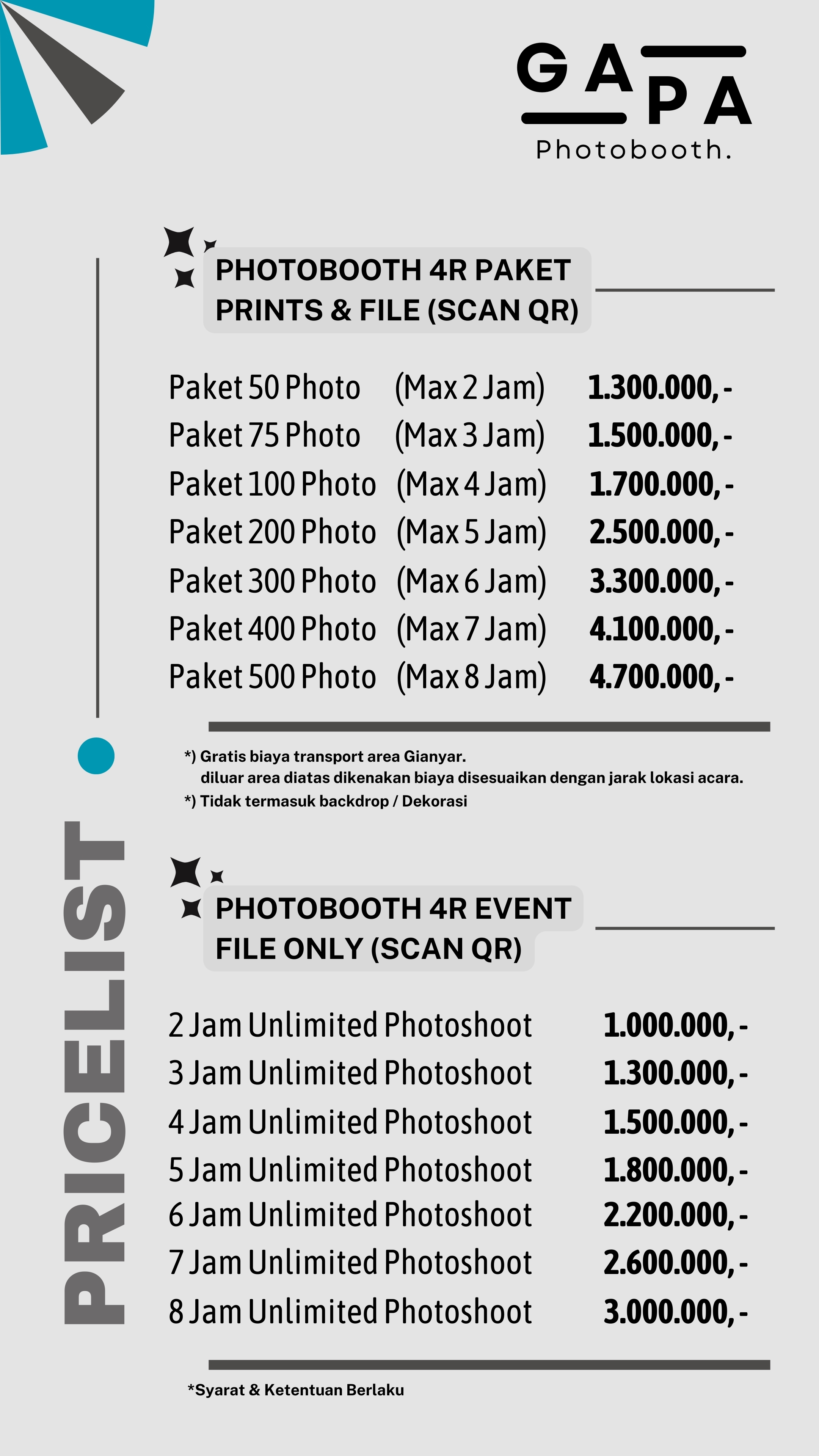Price List Photobooth